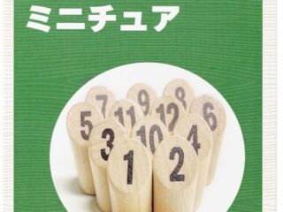 - 1〜12までの数字が記載されている12本のスキットル。